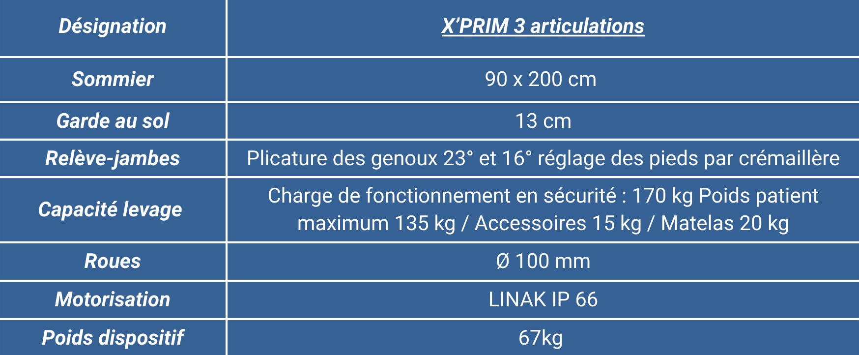 100 % fabrication française, robuste et fiable, le lit X’Prim est idéal pour les soins à domicile, les EHPAD et les structures médicalisées.